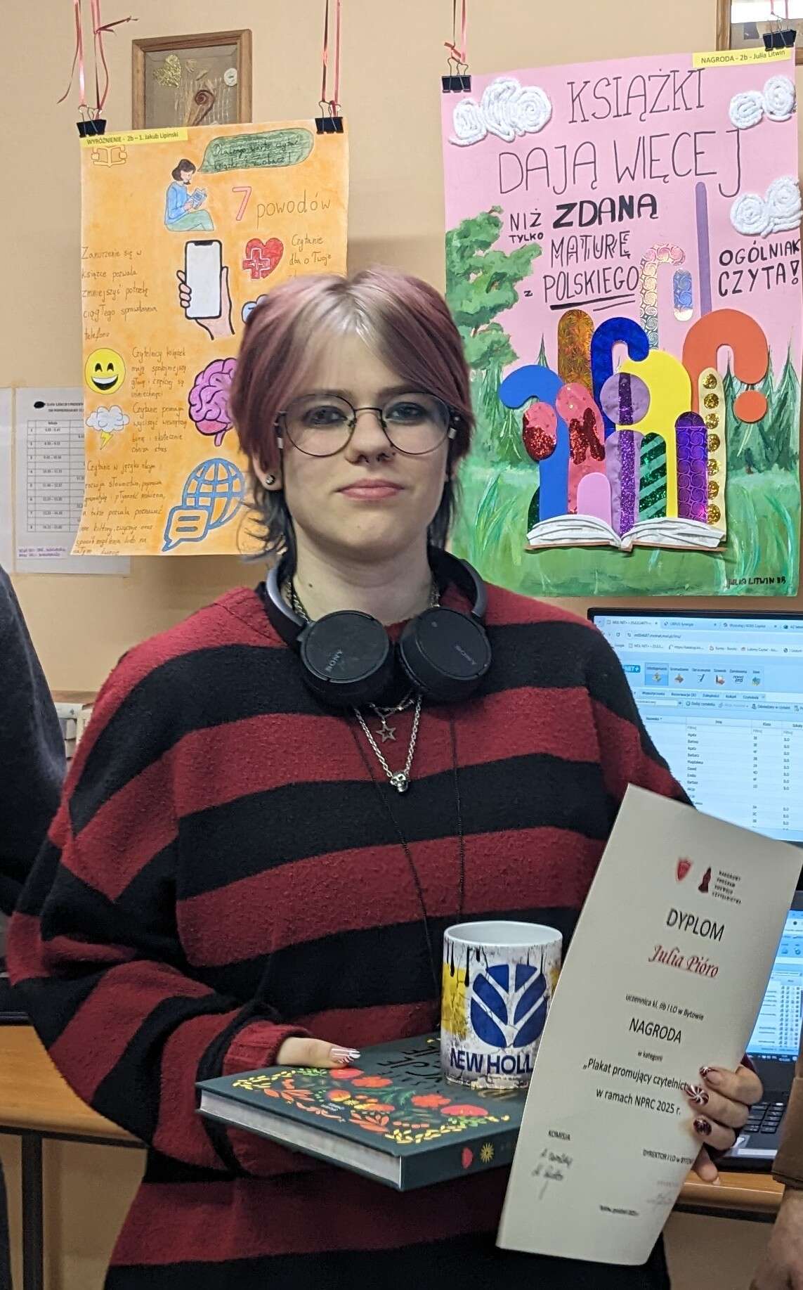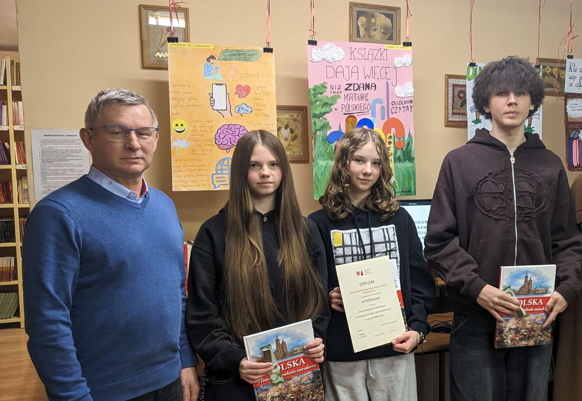 Pod koniec grudnia odbyła się w bibliotece uroczystość wręczenia nagród autorom audiobooków, najciekawszych filmików i prezentacji promujących książki, czytelnictwo oraz szkolny księgozbiór.