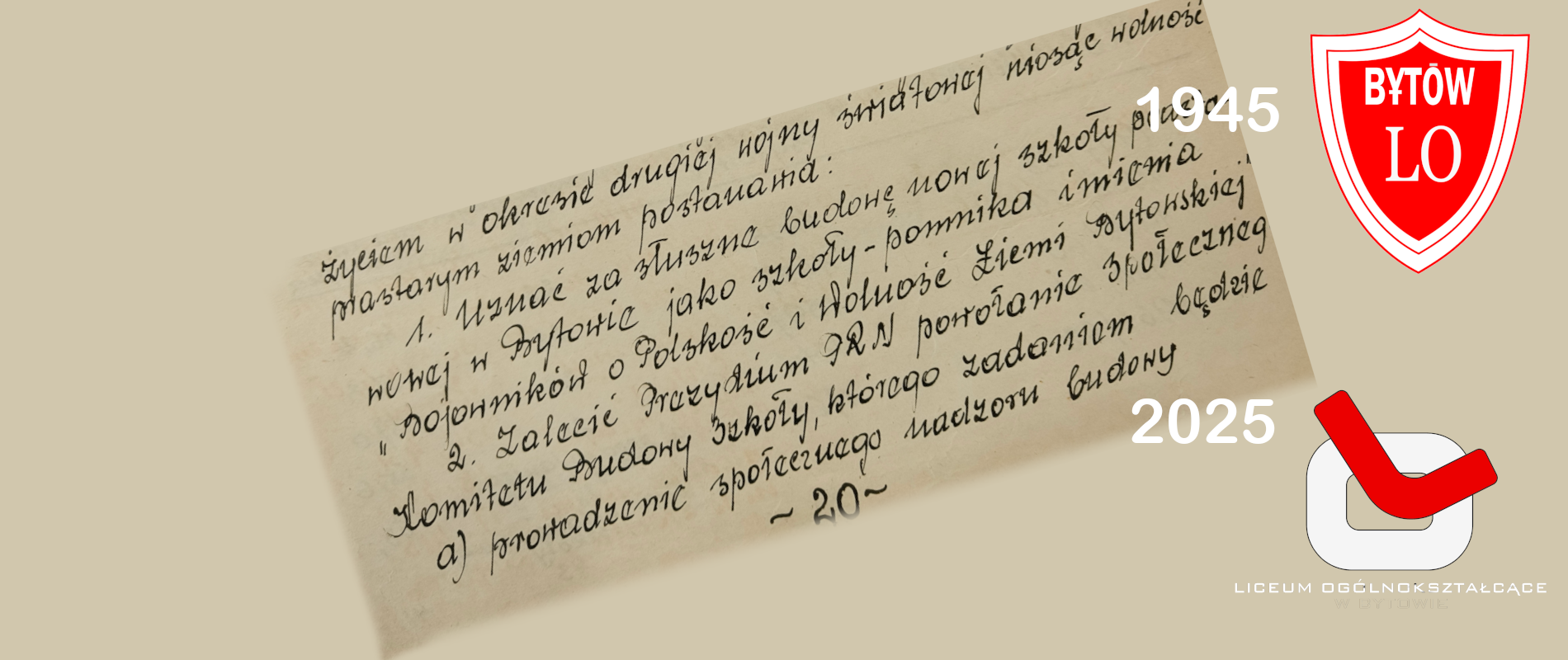 Dyrekcja oraz Grono Pedagogiczne Liceum Ogólnokształcącego im. Bojowników o Wolność i Polskość Ziemi Bytowskiej w Bytowie serdecznie zapraszają uczniów i rodziców na uroczyste rozpoczęcie roku szkolnego, które odbędzie się 1 września 2025 roku o godzinie 9.00 na holu szkoły.